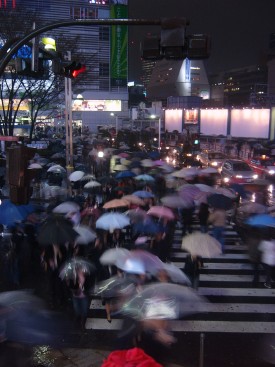 Story: Taking shelter from the rain in a coffee shop in Shinjuku, Tokyo, my friend and I found ourselves on the 3rd floor of a very smoky establishment, sipping hot chocolate and looking out the window. The colors of the umbrellas were beautiful and no two green lights yielded the same combination of hues. They reminded me of jellyfish. In the foreground, you can see a woman's leg wearing a black shoe. It always sticks out when I look at this picture. Again, due to the lighting, the shutter was open for 2 seconds which resulted in the wispy colors that highlight the motion.