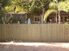 Story: This "neighborhood" is located on Avalon Canyon Road on Catalina Island. At first glance, you tend to focus on the fence. The houses did not show signs of inhabitation. I like the little green one. The little green one seems like some real nice people live there.