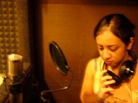 Story: Up and coming recording artist friend Katrina was "in the studio" when I took this photo. It was less a studio and more a physical sound booth purchased on auction which was originally used at CBS. According to the previous owners, Sammy Davis Jr. had been one of its occupants. It was quite dim in the room and there was absolutely no light in the booth so I tried my best to get a clear shot.
