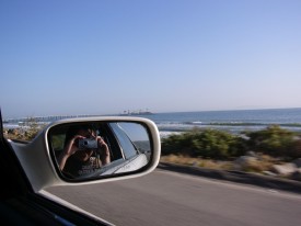 Story: On the way back from a wine tasting excursion to the Santa Ynez valley, my friend An the Pumpkin Bitch took this photo from the passenger seat of my car. It is reminiscent of an Elliott Erwitt photo taken in 1955 entitled California. http://www.peterfetterman.com/artists/erwitt/erwitt_pic02.html