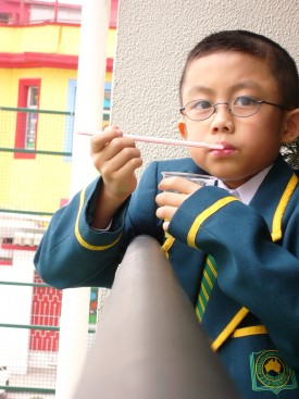 Story: While in Hong Kong, I visited the Australian International School of Hong Kong where the children of many an Australian ex-patriot go along with rich Chinese kids. This boy I have dubbed Little Man was leaning against the 3rd floor railing after school, eating what I recall to be an ice cream. I'm not sure how aware he was of my taking his picture but he didn't seem to mind. My friend had originally taken a similar shot and I was basically copying her, I mean, "imitating her style." I find the Little Man's expression to be preternaturally typical of many Chinese men much older than he; disinterested and aloof. However, he may have been checking out another 4th grade hottie. I can't be too sure.